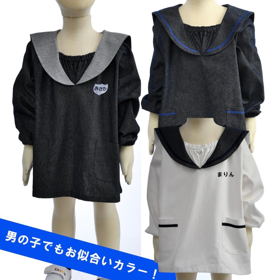 可愛い 名入れ キッズ 遊び着 幼稚園 スモック 子供用 お洒落 おしゃれ 女の子 男の子 水兵ルック 保育園 名前入り デニムセーラースモックの通販 価格比較のビカム